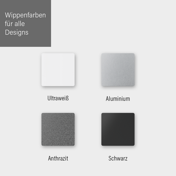 • 3 Farben für die Abdeckungen: Die Abdeckungen, wie z. B. Wippen und Steckdosenfrontblenden, sind in 3 verschiedenen Farben erhältlich: White, Sand und Black. Die satinierte Oberfläche sorgt für ein angenehmes Bediengefühl.